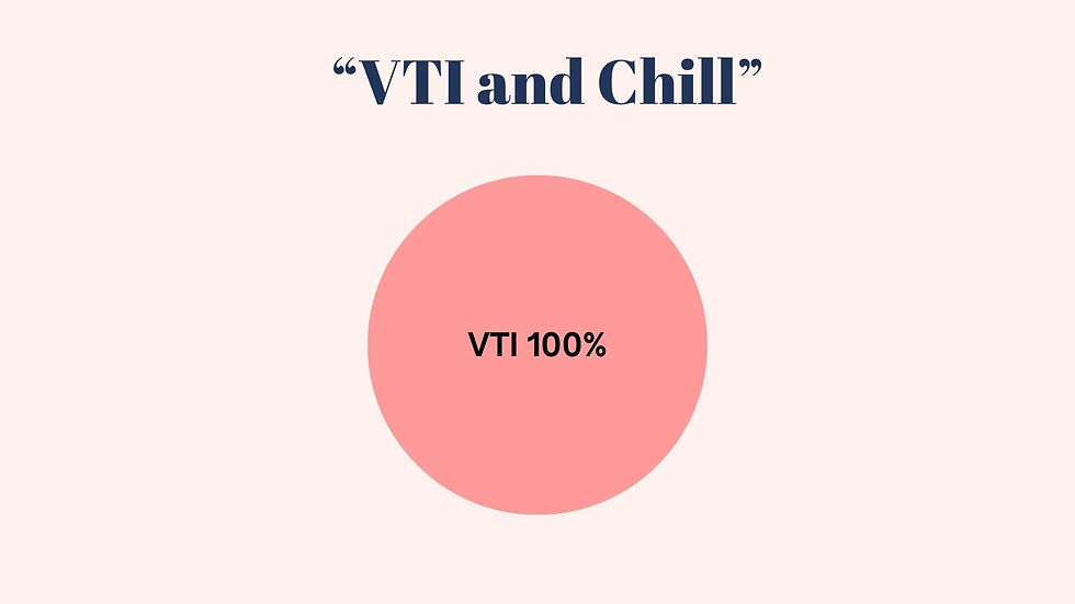 This approach was popularized by Jack Bogle and the Bogleheads and is still a perfectly reasonable choice for many investors. The idea is simple: invest the entire portfolio in VTI, Vanguard’s U.S. Total Stock Market Index ETF, and let time do the heavy lifting.